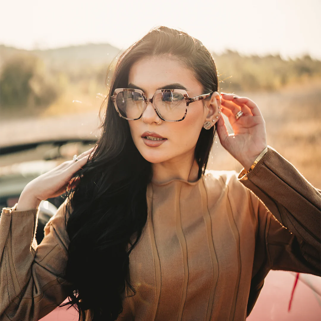 Add some edge to your everyday look wearing these hexagonal glasses. The beautiful pattern on the temple and the outer frame is what makes it executive from your other ordinary eye glasses.